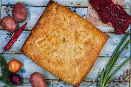 Пирог из слоено дрожжевого теста с мясом и картофелем