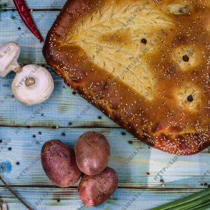 Пирог из сдобного теста с грибами и картофелем